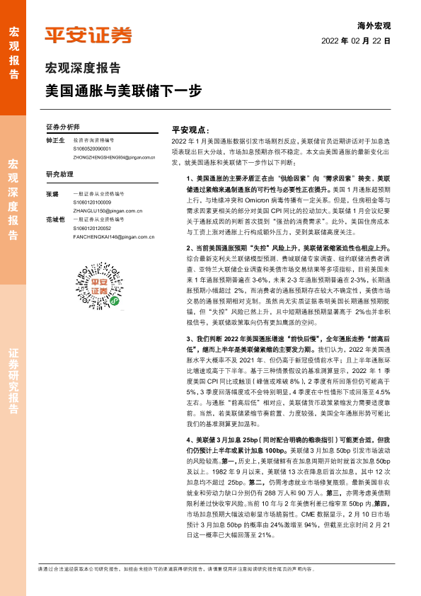 【平安证券】【20220222】宏观深度报告:美国通胀与美联储下一步-15页