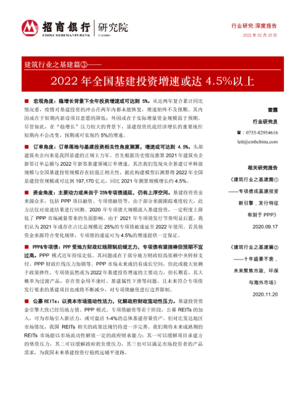 【招商银行】【20220220】建筑行业之基建篇③——2022年全国基建投资增速或达4.5%以上-27页