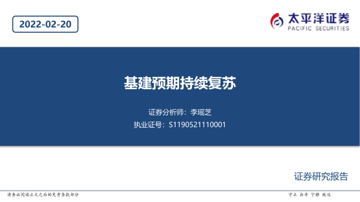 【太平洋证券】【20220220】建筑行业:基建预期持续复苏-21页