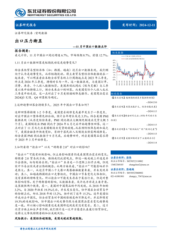 【东北证券】【20241211】11月中国出口数据点评:出口压力渐显-11页