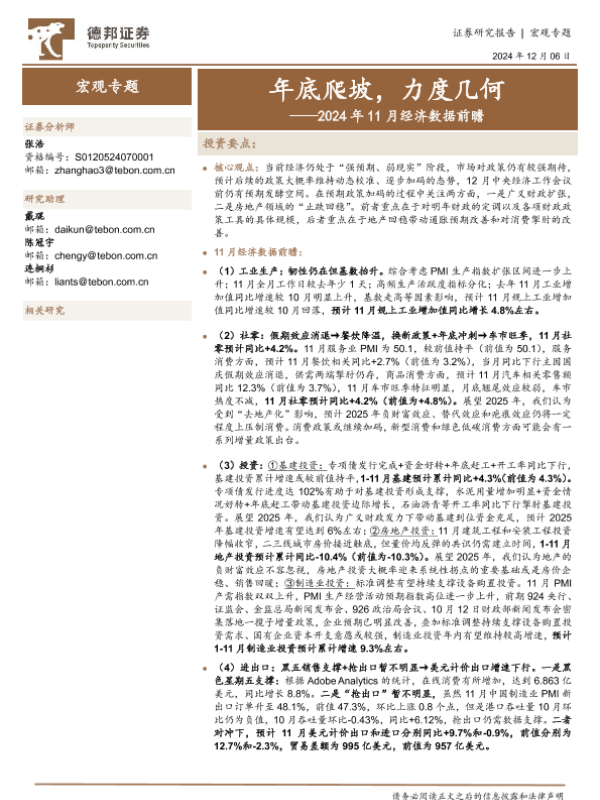 【德邦证券】【20241206】2024年11月经济数据前瞻:年底爬坡,力度几何-25页