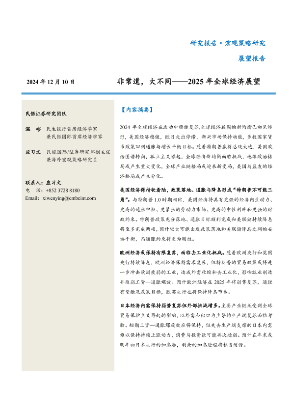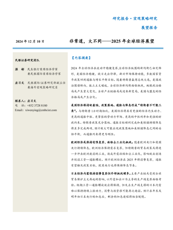 【民银证券】【20241210】2025年全球经济展望:非常道,大不同-42页