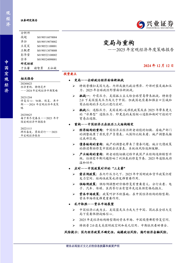 【兴业证券】【20241212】2025年宏观经济年度策略报告:变局与重构-38页