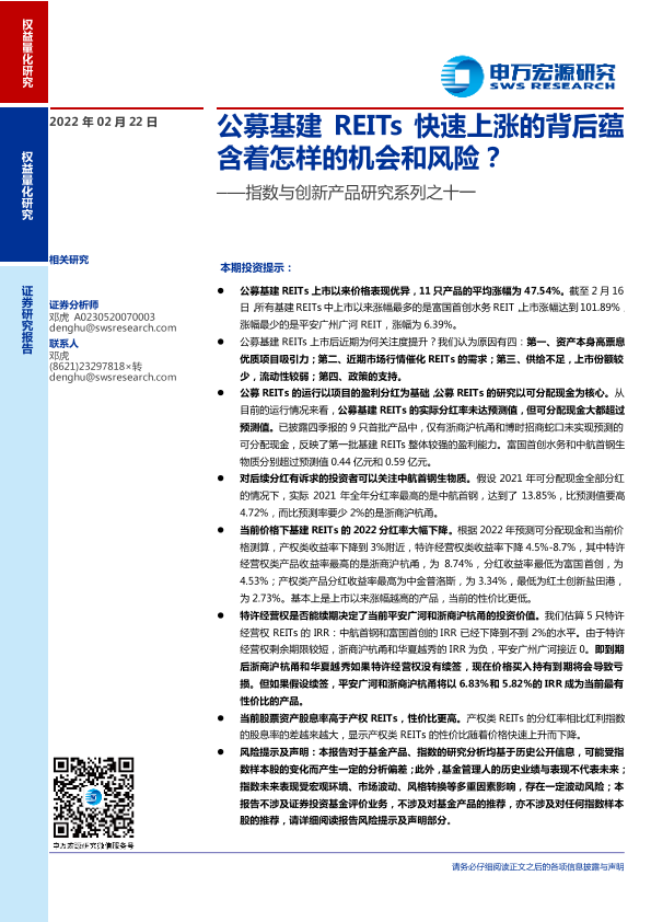 【申万宏源】【20220222】公募基建REITs快速上涨的背后蕴含着怎样的机会和风险?-22页