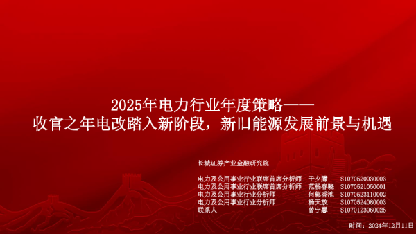 【长城证券】【20241211】2025年电力行业年度策略:收官之年电改踏入新阶段,新旧能源发展前景与机遇-72页