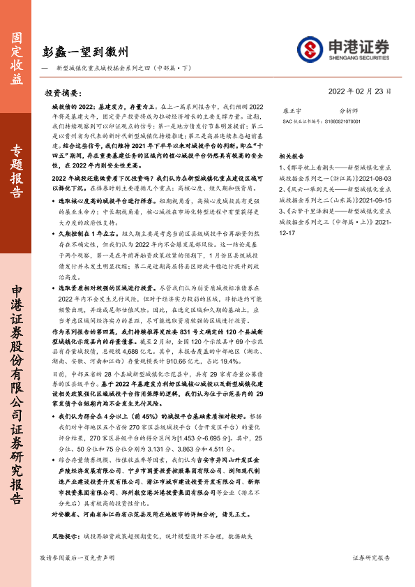 【申港证券】【20220223】新型城镇化重点城投掘金系列之四(中部篇·下):彭蠡一望到徽州-63页