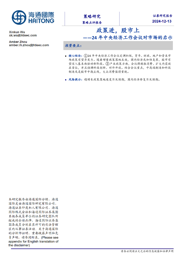 【海通国际】【20241213】24年中央经济工作会议对市场的启示:政策进,股市上-14页