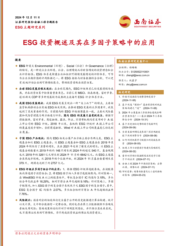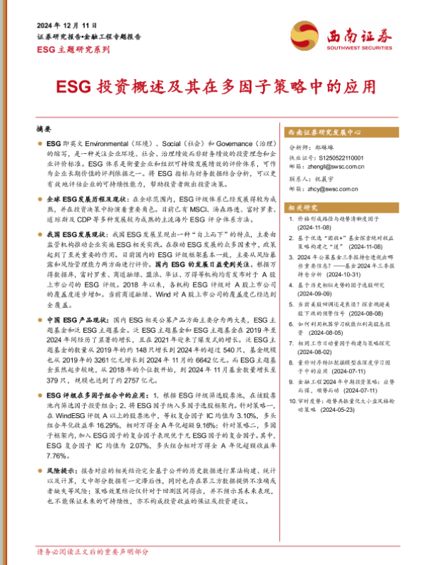 【西南证券】【20241211】ESG主题研究系列:ESG投资概述及其在多因子策略中的应用-21页