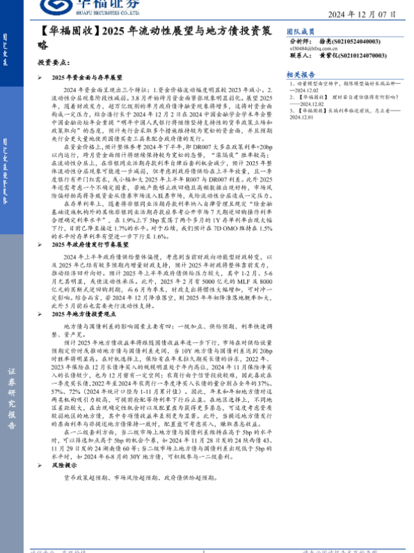 【华福证券】【20241207】【华福固收】2025年流动性展望与地方债投资策略-17页