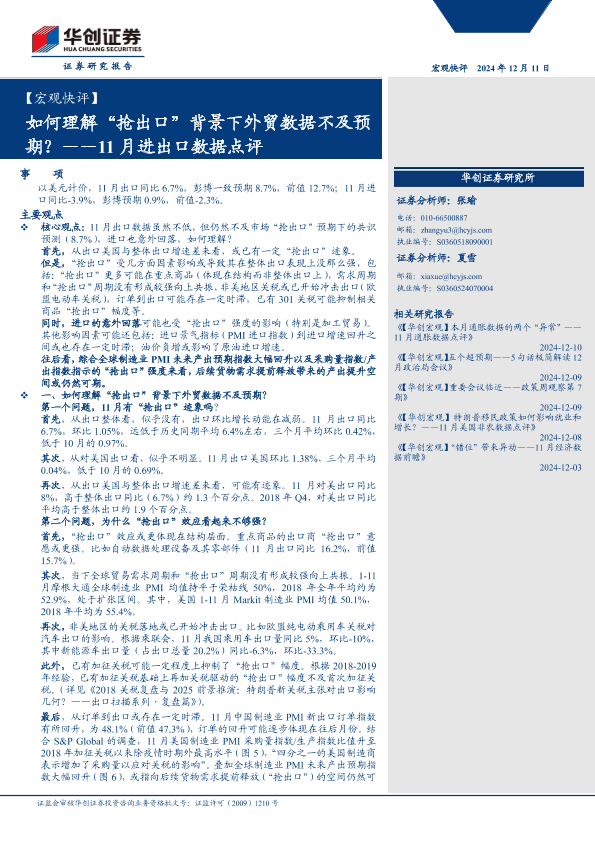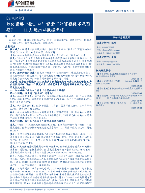 【华创证券】【20241211】【宏观快评】11月进出口数据点评:如何理解“抢出口”背景下外贸数据不及预期?-17页