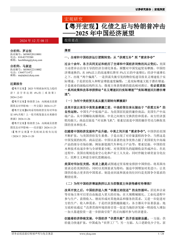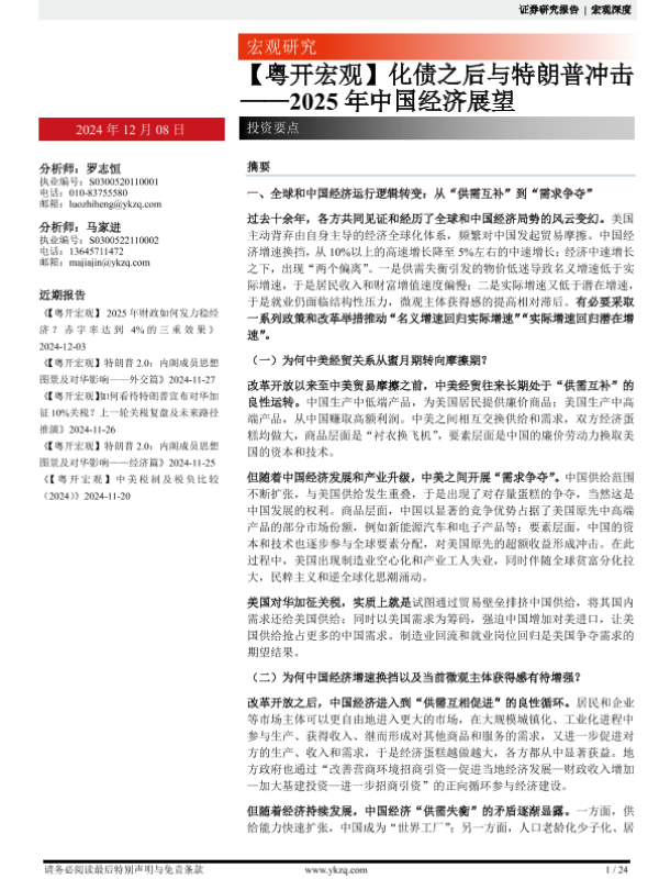 【粤开证券】【20241208】2025年中国经济展望:化债之后与特朗普冲击-24页