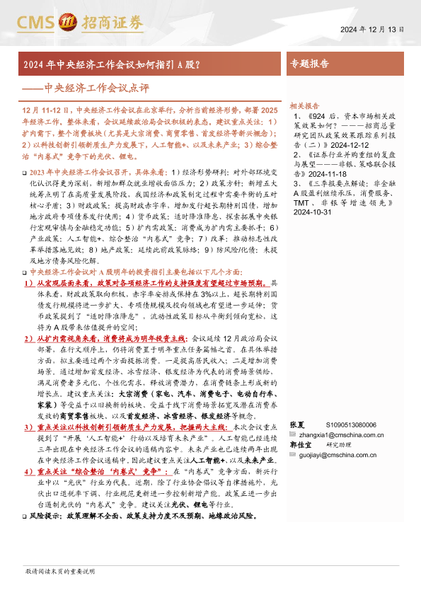 【海通证券】【20241213】中央经济工作会议点评:2024年中央经济工作会议如何指引A股?-10页
