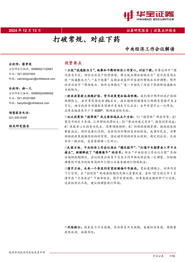 【华宝证券】【20241213】中央经济工作会议解读:打破常规、对症下药-10页
