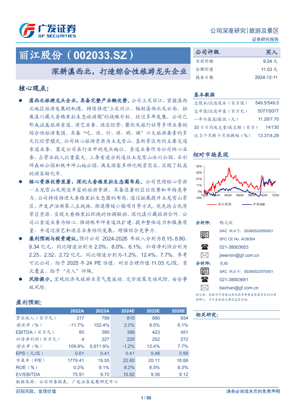 【广发证券】【20241211】丽江股份(002033)深耕滇西北,打造综合性旅游龙头企业-33页