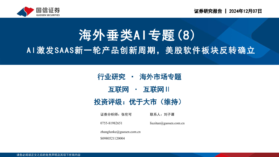 【国信证券】【20241207】互联网行业海外垂类AI专题(8):AI激发SAAS新一轮产品创新周期,美股软件板块反转确立-114页