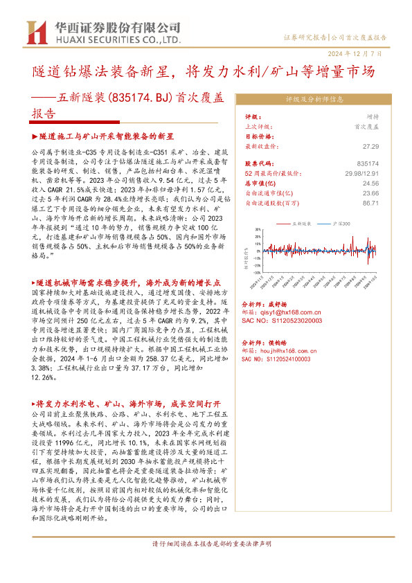 【华西证券】【20241207】五新隧装(835174)首次覆盖报告:隧道钻爆法装备新星,将发力水利/矿山等增量市场-31页