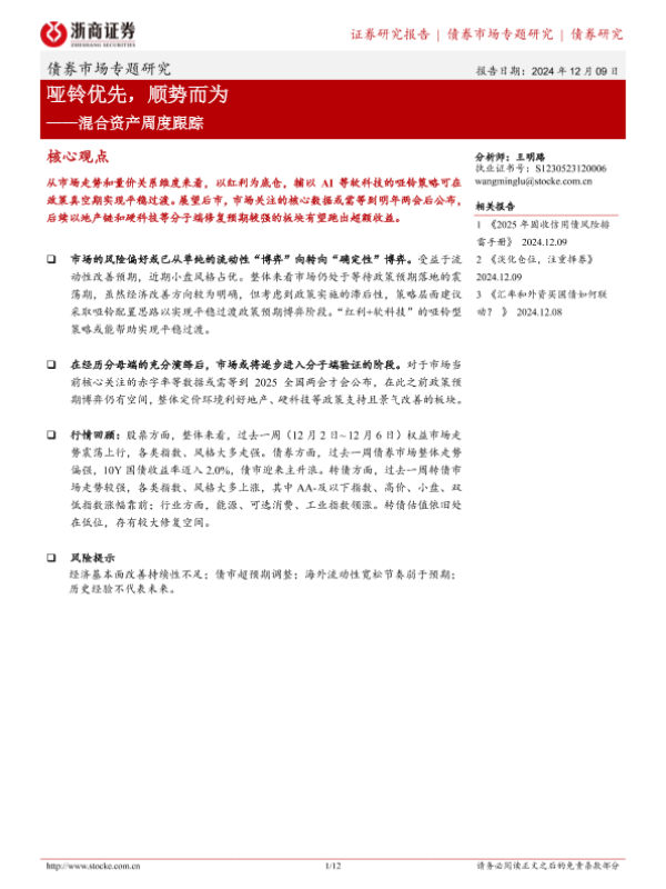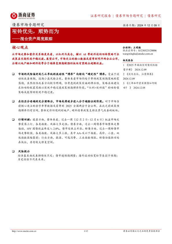 【浙商证券】【20241209】债券市场专题研究-混合资产周度跟踪:哑铃优先,顺势而为-12页