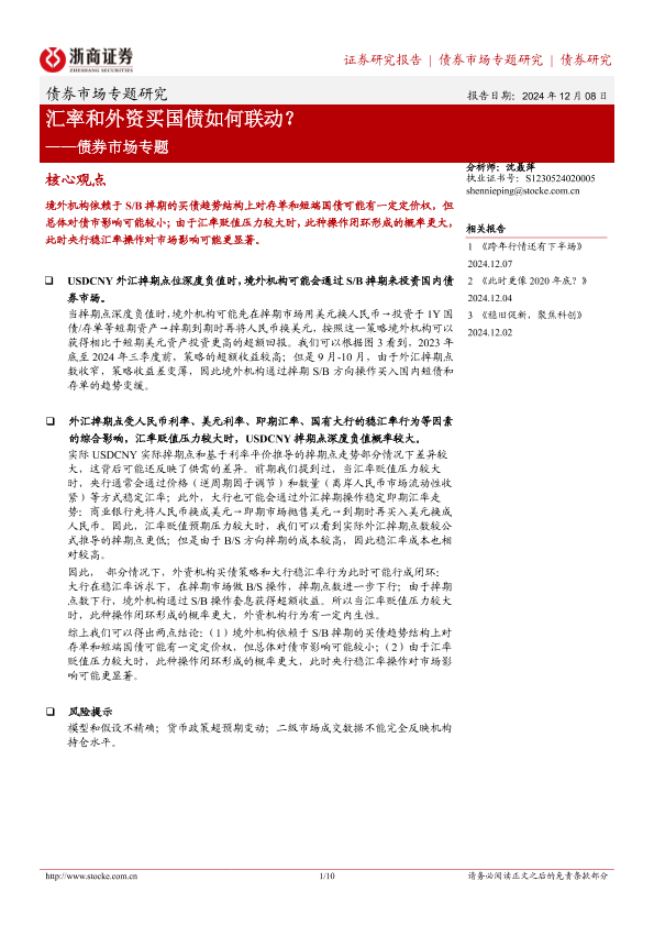 【浙商证券】【20241208】债券市场专题:汇率和外资买国债如何联动?-10页