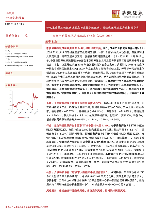 【华源证券】【20241210】北交所科技成长产业跟踪第四期:千帆星座第三批组网卫星成功发射加速组网,关注北交所卫星产业相关公司-18页