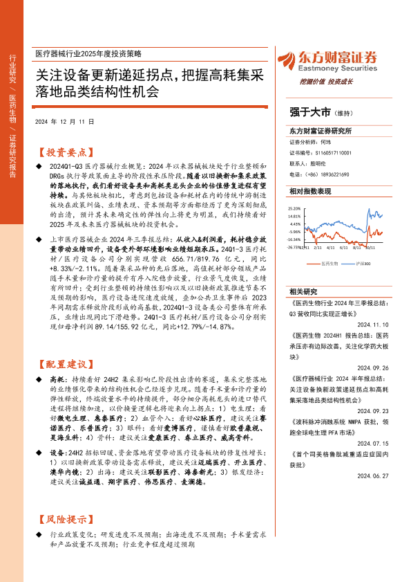 【东方财富证券】【20241211】医疗器械行业2025年度投资策略:关注设备更新递延拐点,把握高耗集采落地品类结构性机会-39页