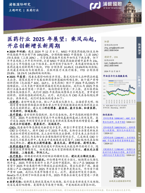 【浦银国际】【20241210】医药行业2025年展望:乘风而起,开启创新增长新周期-52页