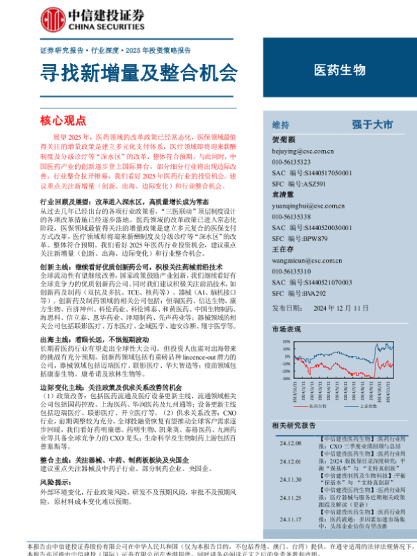 【中信建投证券】【20241211】医药生物行业:寻找新增量及整合机会-136页