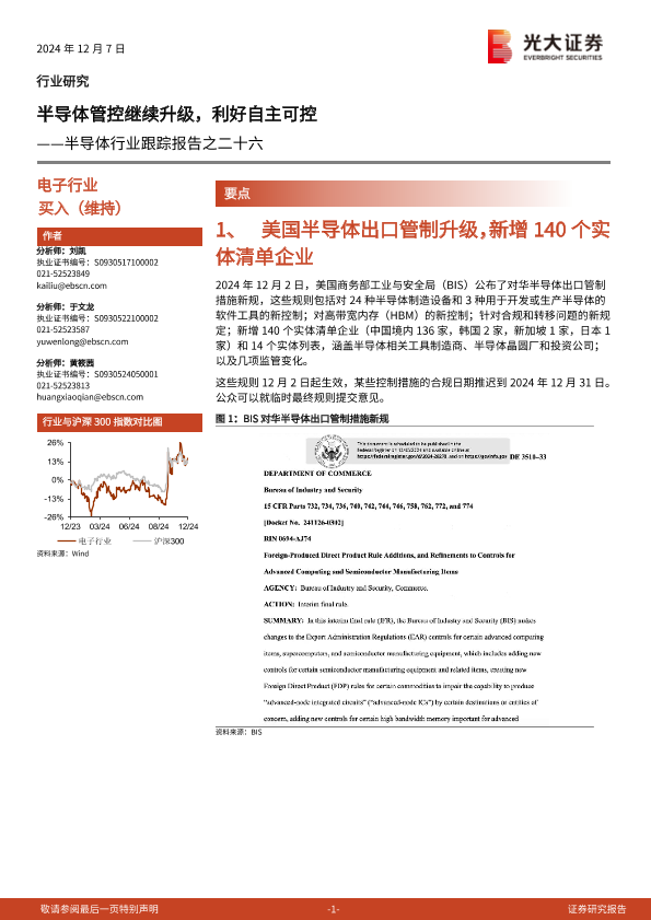 【光大证券】【20241207】半导体行业跟踪报告之二十六:半导体管控继续升级,利好自主可控-10页