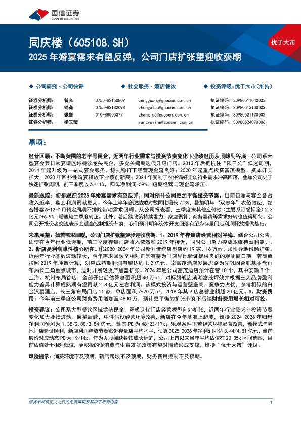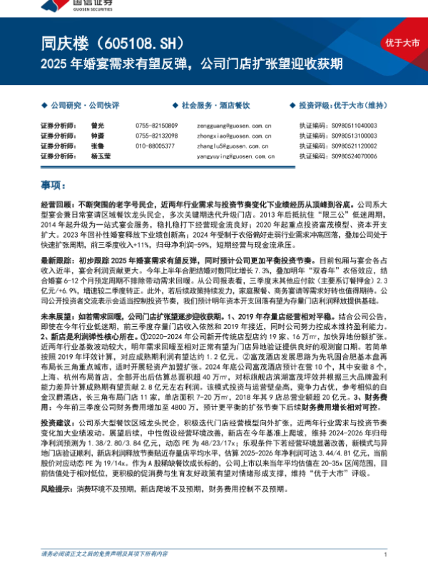 【国信证券】【20241208】同庆楼(605108)2025年婚宴需求有望反弹,公司门店扩张望迎收获期-10页