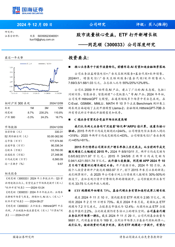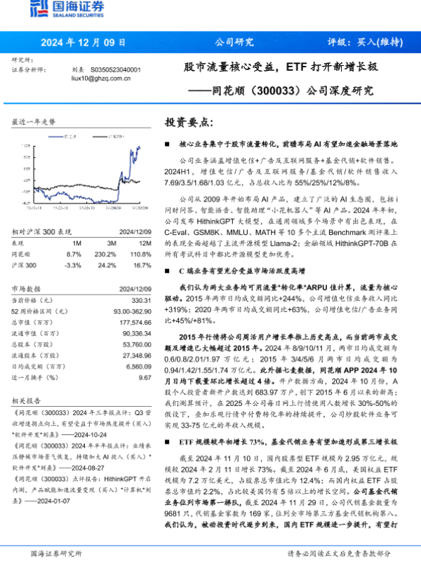 【国海证券】【20241209】同花顺(300033)公司深度研究:股市流量核心受益,ETF打开新增长极-15页