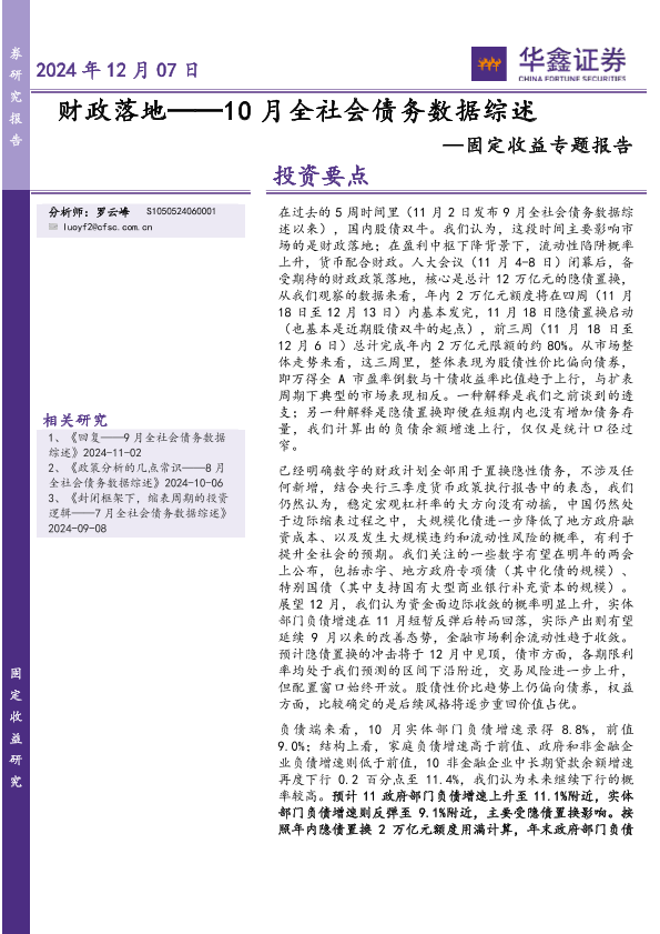 【华鑫证券】【20241207】财政落地——10月全社会债务数据综述-14页