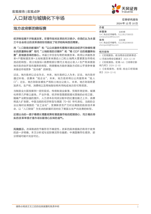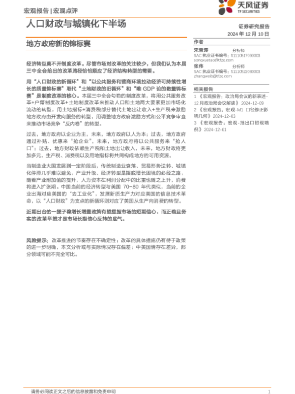 【天风证券】【20241210】地方政府新的锦标赛:人口财政与城镇化下半场-12页