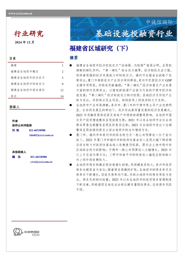 【中诚信国际】【202412】基础设施投融资行业:福建省区域研究(下)-15页