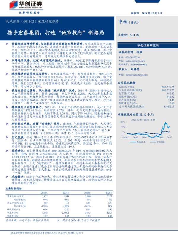 【华创证券】【20241206】天风证券(601162)深度研究报告:携手宏泰集团,打造“城市投行”新格局-27页