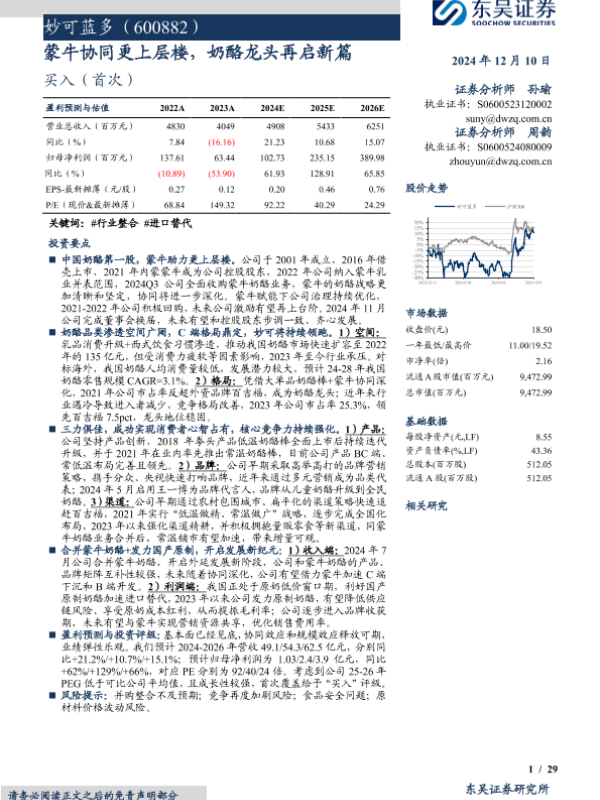 【东吴证券】【20241210】妙可蓝多(600882)蒙牛协同更上层楼,奶酪龙头再启新篇-29页