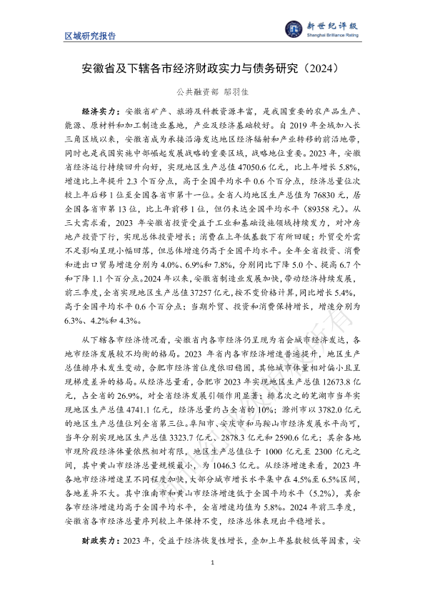 【新世纪评级】【2024】安徽省及下辖各市经济财政实力与债务研究(2024)-29页