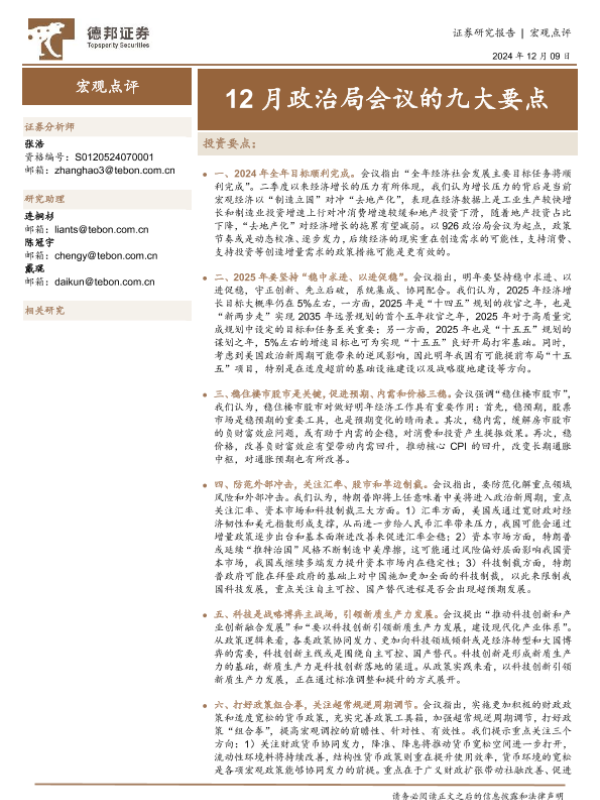 【德邦证券】【20241209】宏观点评:12月政治局会议的九大要点-15页