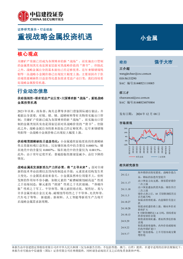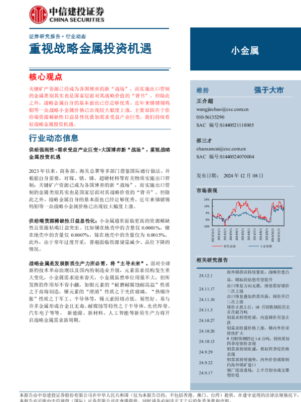 【中信建投证券】【20241208】小金属行业动态:重视战略金属投资机遇-10页