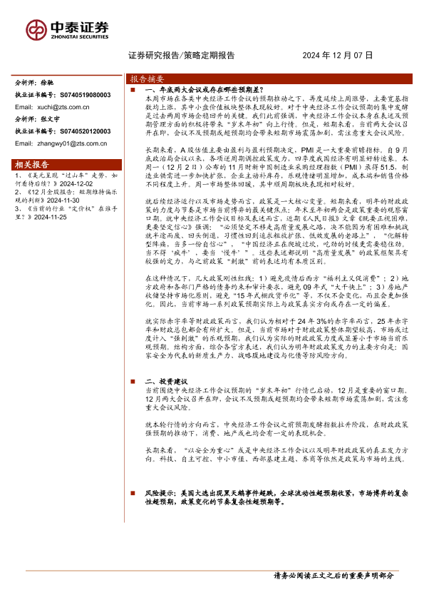 【中泰证券】【20241207】年底两大会议或存在哪些预期差?-12页