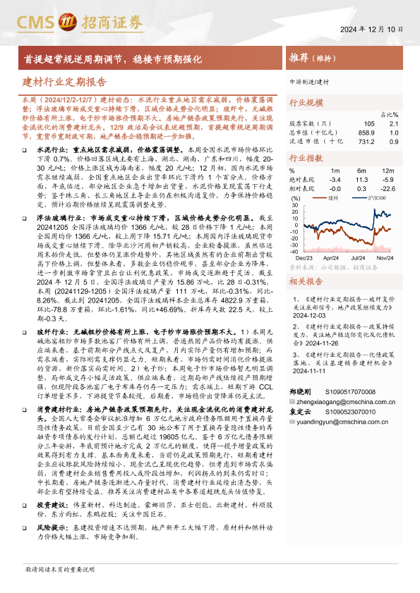 【海通证券】【20241210】建材行业定期报告:首提超常规逆周期调节,稳楼市预期强化-27页