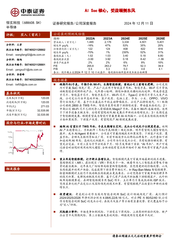 【中泰证券】【20241211】恒玄科技(688608)AI+Soc核心,受益端侧东风-39页