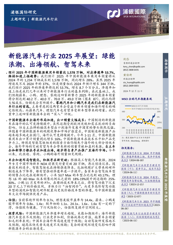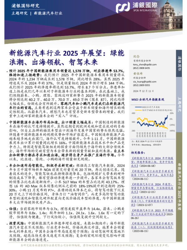 【浦银国际】【20241211】新能源汽车行业2025年展望:绿能浪潮、出海领航、智驾未来-53页