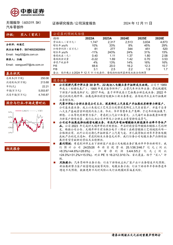 【中泰证券】【20241211】无锡振华(605319)汽零客户结构不断优化,电镀业务打开新增长极-18页