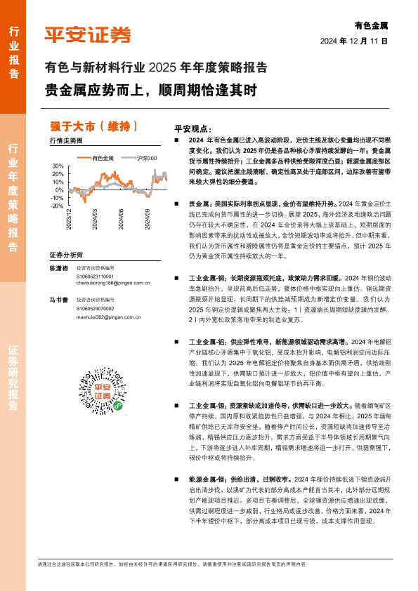 【平安证券】【20241211】有色与新材料行业2025年年度策略报告:贵金属应势而上,顺周期恰逢其时-24页
