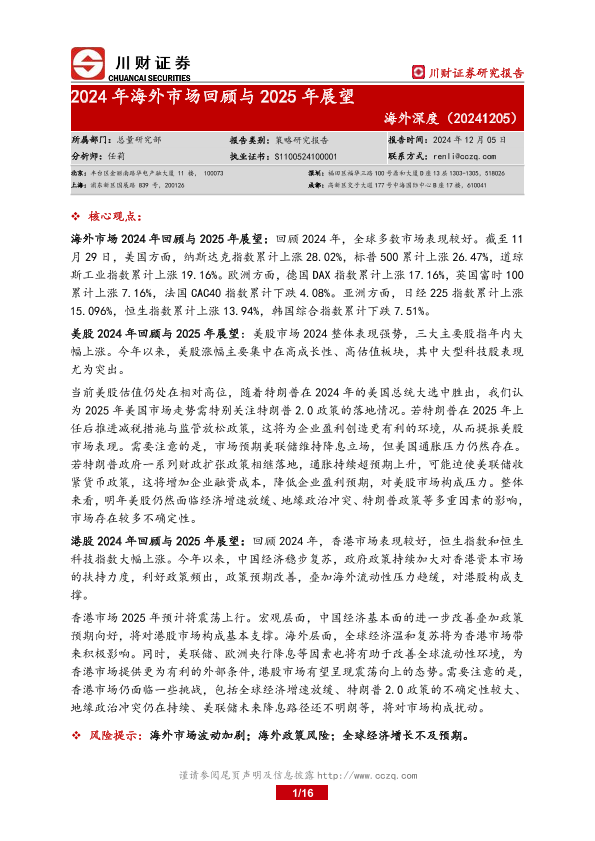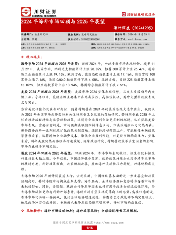 【川财证券】【20241205】海外深度:2024年海外市场回顾与2025年展望-16页