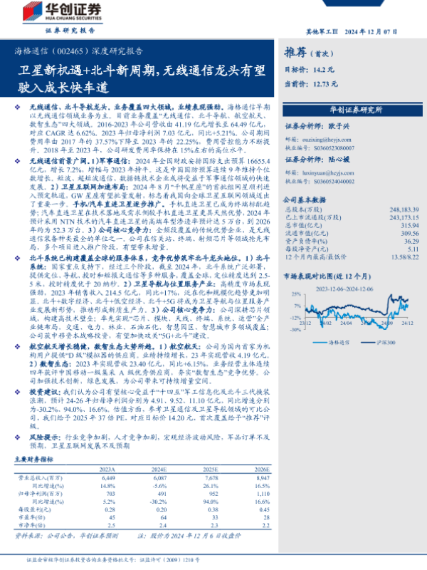 【华创证券】【20241207】海格通信(002465)深度研究报告:卫星新机遇+北斗新周期,无线通信龙头有望驶入成长快车道-40页