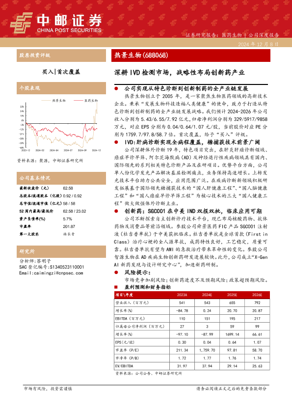 【中邮证券】【20241208】热景生物(688068)深耕IVD检测市场,战略性布局创新药产业-15页