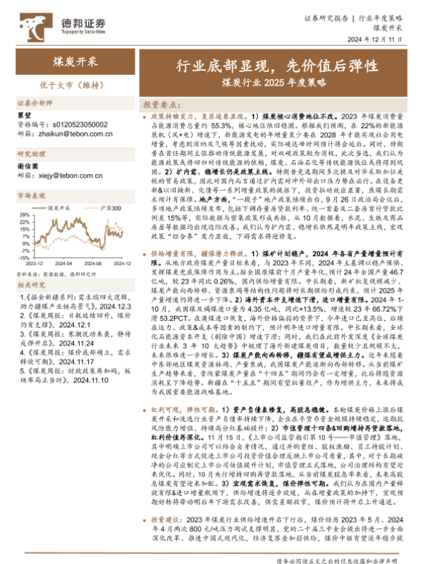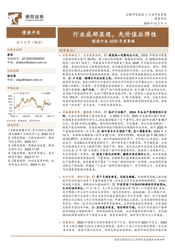 【德邦证券】【20241211】煤炭行业2025年度策略:行业底部显现,先价值后弹性-37页