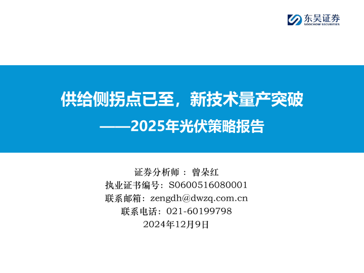【东吴证券】【20241209】电力设备与新能源行业2025年光伏策略报告:供给侧拐点已至,新技术量产突破-70页