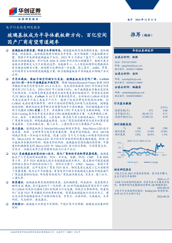 【华创证券】【20241211】电子行业深度研究报告:玻璃基板成为半导体载板新方向,百亿空间国产厂商有望弯道超车-24页