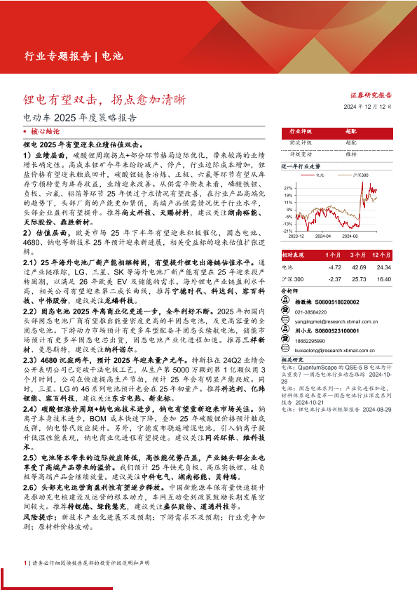 【西部证券】【20241212】电池行业电动车2025年度策略报告:锂电有望双击,拐点愈加清晰-34页
